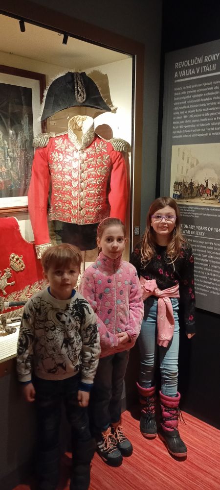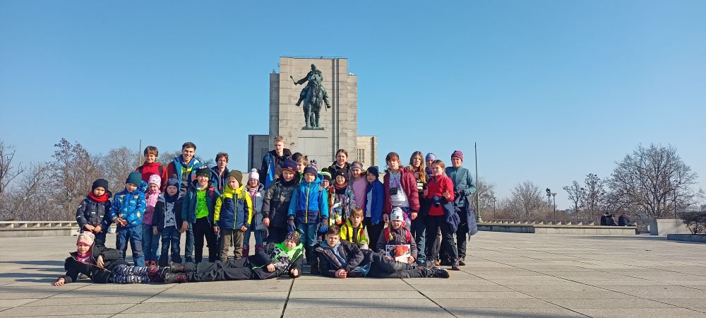 Poté jsme se po bývalé železniční trati – dnes pěší stezce – vydali do Armádního muzea Žižkov. Zde jsme strávili nějaký ten čas a prohlédli si nabízené expozice. Ty byly velmi interaktivní a názorné, a tak zabavily i ty nejmenší. Když jsme se důkladně nabažili, vyrazili jsme do prudkého svahu kopce Vítkov, na jehož vrcholku jsme se rozhlédli, nasvačili, ale také vyfotili a prohlédli si monumentální památník a jezdeckou sochu Jana Žižky, stejně jako dechberoucí pražské panoráma.
