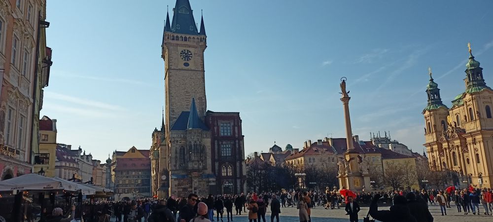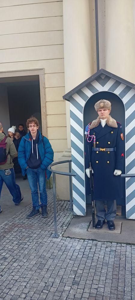 Sešli jsme dolů a několika uličkami se dostali na náměstí Republiky, do míst, kde začíná tzv. královská cesta – odtud jezdívali čeští králové na Pražský hrad. A my jsme se vydali po jejich stopách. Celetnou jsme se dostali na Staroměstské náměstí, kde se některým podařilo zahlédnout bijící orloj, a poté na Karlův most, po kterém se nám i přes šílené davy turistů podařilo překonat Vltavu. Nyní jsme již jen vystoupali malebnou Malou Stranou na Hradčanské náměstí – před Hrad, kde královská cesta končí.