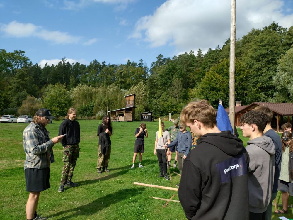Je pravé poledne 27.9.2025 a na tábořišti startuje 27. ročník Vlajkové Hry. Do terénu vyráží pět družstev která se stanou na následujících 12 h nepřáteli na fáborkový život i na smrt. Některé týmy zvolily již tradiční lokace pro své kempy, jiné přišly se zajímavými novými lokacemi. Již po chvíli se začínali vracet první mrtví a vlajky měnily svá místa na mapě. V sedm hodin se pak rozsvítily blikačky v kempech, hráči vyměnily své fáborky za jednotné bílé a pokračovala noční část stejně akční jako ta denní. O půlnoci pak přeživší zničili své kempy a jali se diskutovat o hře a očekávat ráno. Přibližně v devět se pak všichni dozvěděli že nejlepším týmem byl letos tým hnědých. Družstva Růžová: Troski Kulich „C“, Helča, Ondra, Monča, Štěpa, Gabča, Lemond Modrá: Go Stapo Vlk „C“, Jeník, Džejkob, Matěj Hnědá: Bolest je dočasná, ale trip je věčný Bofik „C“, Jiřička, Štěpka, Kačí Černá: JenDiHo dvojky Ráca „C“, Houbatix, Pikoška, Ondra, Pÿškot, Dejf Žlutá: Siderické kyvadýlko Bejk „C“, Širka, Vláďa, Mořská kočička