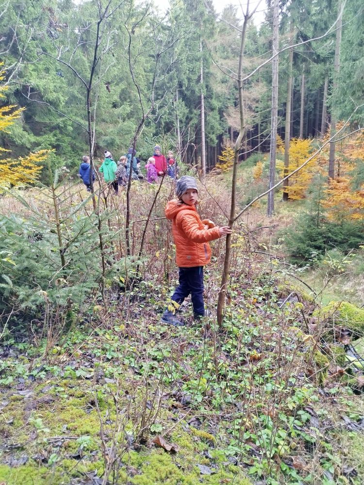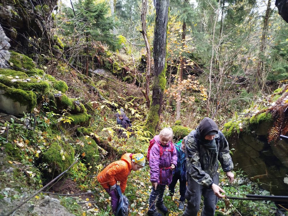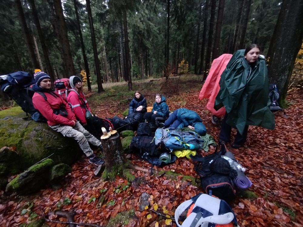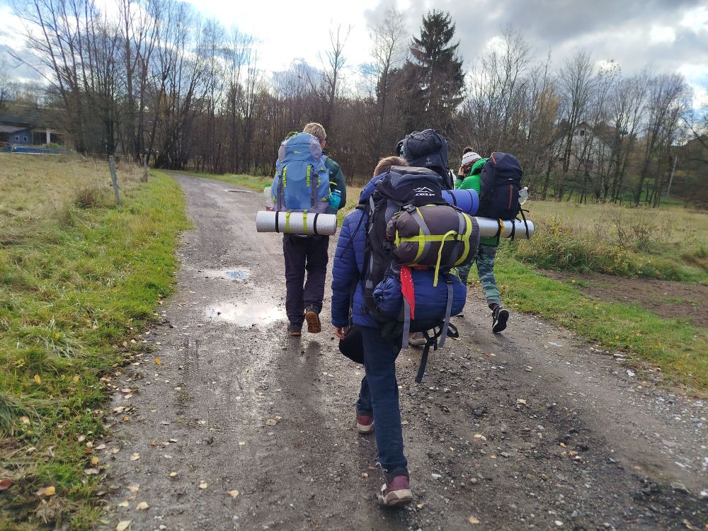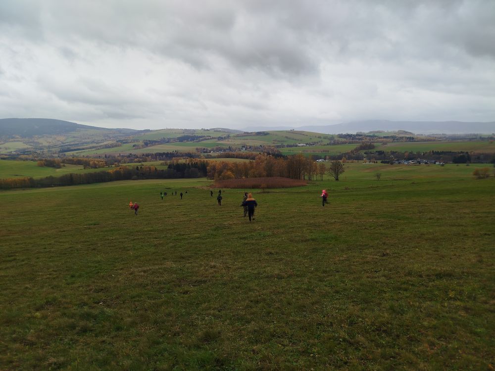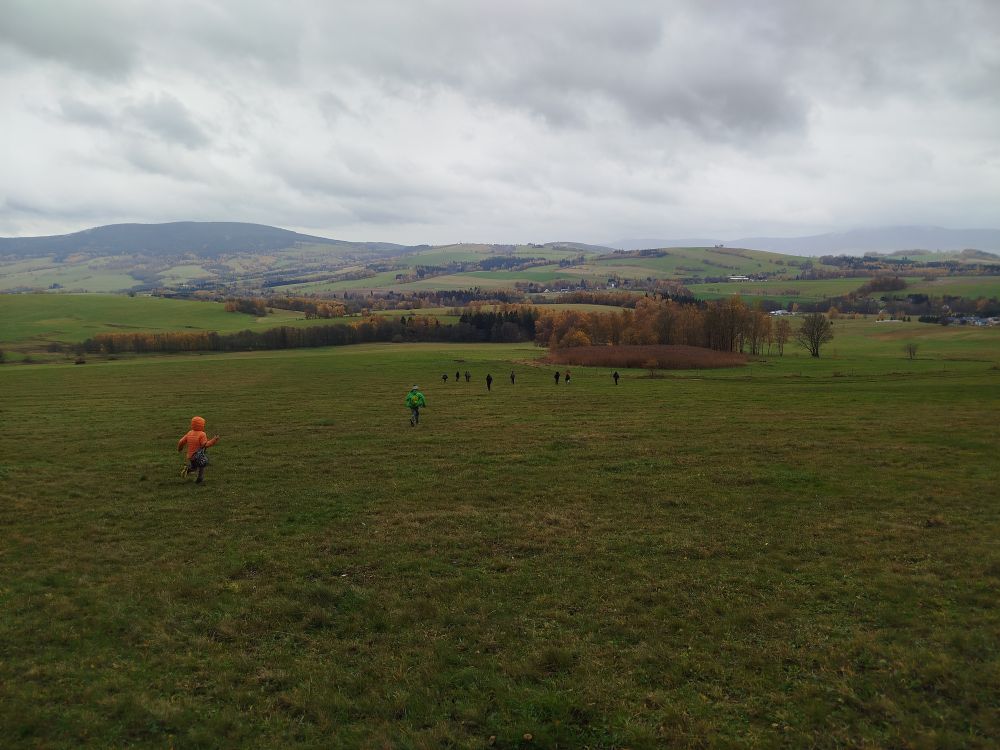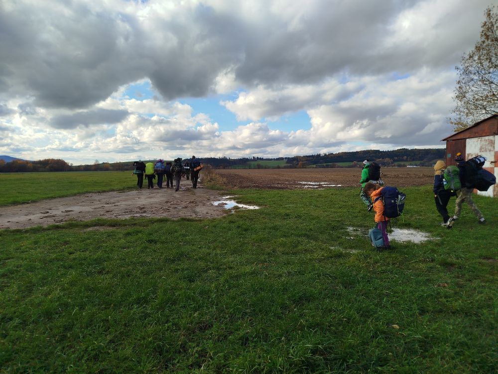 Stanice Mladkov nás přivítala lehkým podzimním deštěm. Tudíž jsme všichni, kdo měli, nasadili pláštěnky na batohy a vyrazili jsme do kopců. Hned po pár metrech nás už přivítaly pohledy prázdných střílen první pevnůstky, tzv Řopíku. Zde se děti dozvěděly že to rozhodně není poslední objekt který děti na výpravě uvidí a že je mají zkusit počítat, také zde započala oblíbená hra - količek.