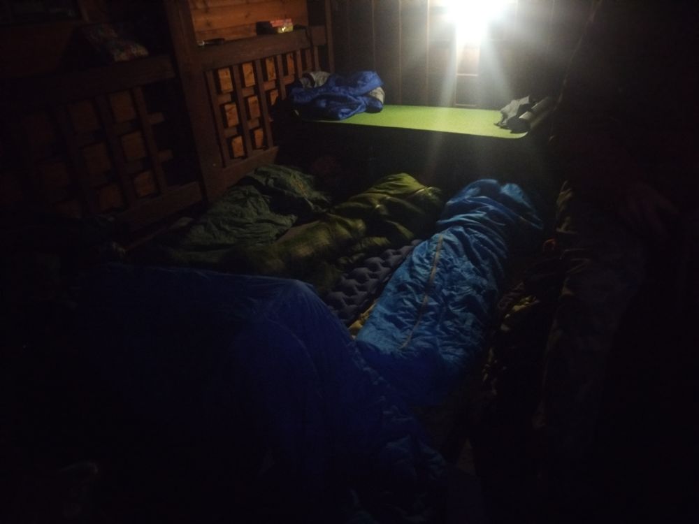 Cesta nás zavedla až do dolních Boříkovic, kde jsme doplnili zásoby vody. Dalších pár kilometrů nás pak zavedlo do dolní Lipky na nádraží. Zde nás přivítala vyhřátá čekárna, a tak jsme vytáhli svačinu a odpočali si. Když jsme zjistili, že nemusíme jet vlakem do Králík a od tamtud autobusem, ale můžeme jet vlakem rovnou do Červeného potoka, zvedlo nám to náladu. Abychom nebyli tak nadšení, tak nás při příjezdu do Červeného potoka přivítal kromě tmy nehorázný liják. Jelikož jsme byli už z vlaku připraveni v pláštěnkách, vydali jsme se nehostinným počasím směr nový domov. Cesta se zdála nekonečná, minuli jsme nespočet kaluží, ještě větší počet jich pak naše nohy natrefily, nohavice jsme měli zráchané od mokré trávy, a tak jsme mysleli, že už nic horšího nás potkat nemůže. Omyl přes cestu byl natažen ohradník. Po chvilce diskuzí jsme vymysleli náhradní cestu, která nás nepatrně zdržela, každopádně už za chvíli jsme zdolali vítězné poslední kopec k objektu KS.5 u potoka. V přilehlém altánu jsme rozdělali oheň a děti byly nastěhovány do objektu, dívky obsadily pravou střeleckou kasematu, chlapci byli umístěni na ubikace poddůstojníků. Mezitím vedoucí v altánu rozjeli závodní kuchyni a vytvořili pokrm typu: noky se sýrovou omáčkou. Když bylo vše hotovo, dostal každý svou porci a po jejím snědení se uvelebili do srubu ke spánku. My jakožto vedení jsme ještě zoufale koukali na předpověď, která nám hlásila následující dny plné deště.