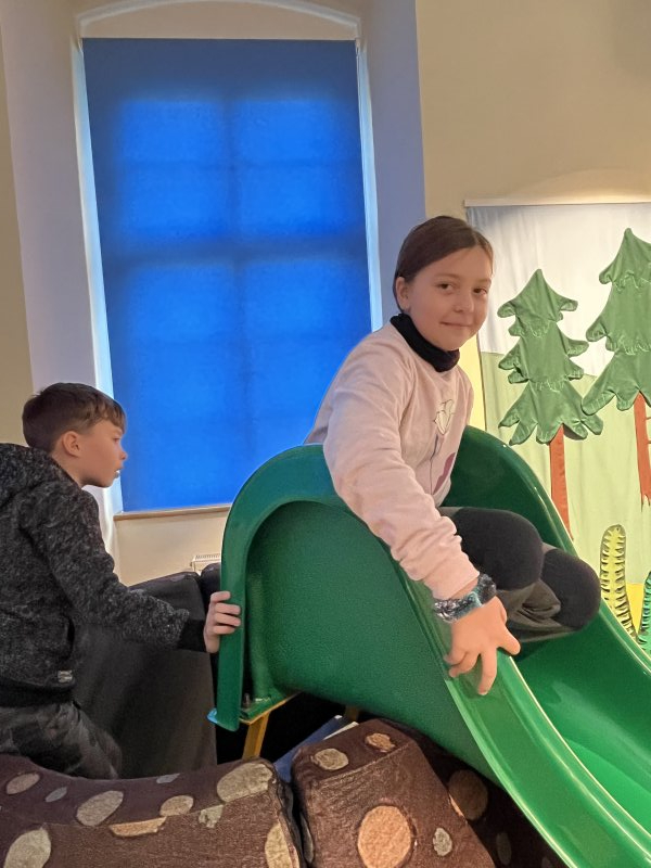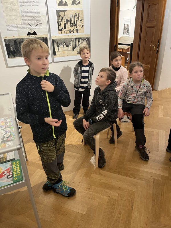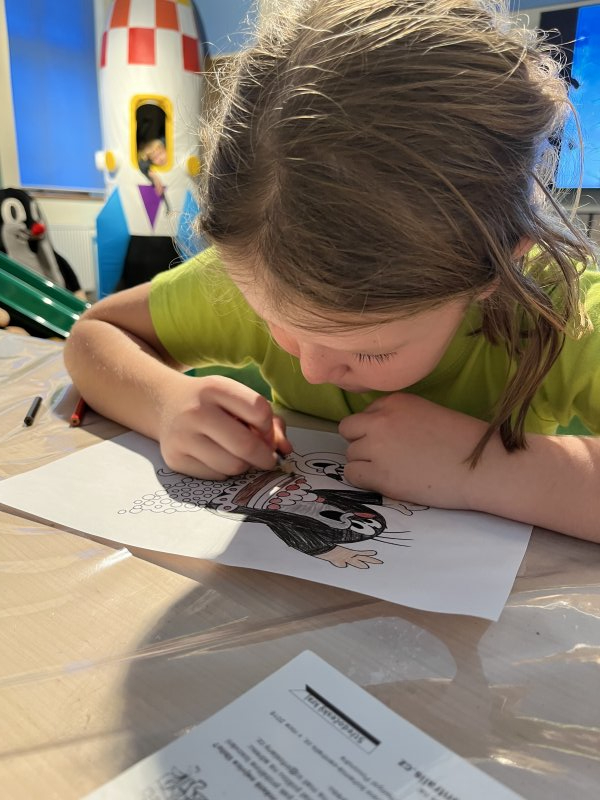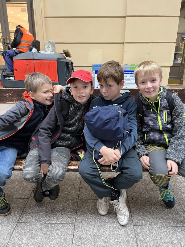 Dne 5.11. ráno jsme se sešli v poměrně komorním počtu 9 dětí a 5 vedoucích na kolínském nádraží. Rozloučili jsme se s rodiči a nastoupili do vlaku mířícího na Hlavní nádraží v Praze. Zde jsme vystoupili, setkali se s dalšími třemi členy výpravy Kulichem, Houbou a Jáchymem a přesunuli se na Masarykovo nádraží. Odtud jsme se dostali dalším vlakem do Kladna. Ráno se počasí netvářilo příliš vlídně, ale na cestu na kladenský zámek nám již svítilo sluníčko. Tam jsme navštívili výstavu Krtek a Kladno, kde jsme se dozvěděli něco o životě Zdeňka Milera a jeho tvorbě, podívali se do štoly a poslechli si něco o těžbě uhlí a nakonec zhlédli několik pohádek a pohráli si v herně. Poté jsme se naobědvali v zámecké zahradě a přitom pozorovali v medvědáriu místního medvěda provádějícího své pravidelné obchůzky. Po jídle jsme se prošli na městský stadion Sletiště, kde jsme se zabavili na dětském a workoutovém hřišti a posilnili se limčou. Po nějaké době však byl i přes mírný protest dětí čas odejít a vydat se na nádraží. Opět jsme přestoupili v Praze s krátkou zastávkou u lanovky na hřišti před Hlavním nádražím a úspěšně jsme, i když s mírným zpožděním kvůli výluce, dorazili zpět do Kolína.