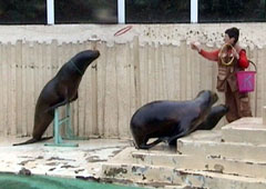 Zlatým hřebem je krmení cvičených lachtanů, rozdováděné opice a sibiřští bílí tygři. Ti se ovšem moc nepředvádějí. Jeden leží na zemi natažený jako zdechlina, druhý aspoň sedí a líně pomrkává na okolí. Zato horské kozy jsou velmi divoké. V souboji kozel proti kozlovi na sebe skáčou a srážejí se hlavami a to všechno na prudkém srázu, na kterém by se člověk stěží udržel. Ještě zbývá vyfotit si žirafu a už jede tramvaj na nádraží.