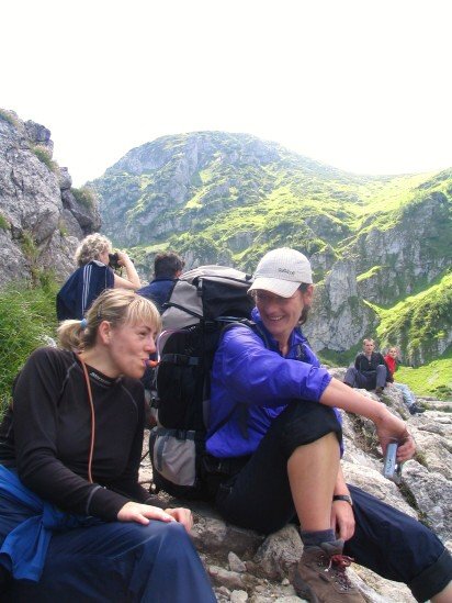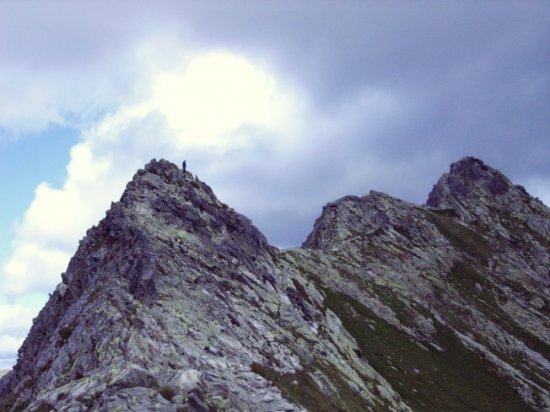 2. Velký Vont Cílem našeho druhého dne byl vrcholový kříž na hoře Giewont. Tato dominanta ve výšce něco pod 2000 m je vidět z velké dálky a obvykle se sem plahočí obrovské zástupy lidí, protože hora je považována za poutní místo. Cestou jsme mohli zhodnotit skokanský styl mladých lyžařů na tréninku a také nakoupit všudypřítomný ovčí sýr. Naše výstupová trasa patřila k těm „obtížnějším“ a tak alespoň první část dne byl relativně klid od lidí. Poryvy větru pod vrcholem nás docela slušně přepadly, až to Katku sfouklo k zemi. Ráno bylo na teploměru 12.5 °C, v noci ještě méně, takže ve spojení s větrem a našimi propocenými oděvy nic moc. Odpolední slunečno při sestupu vše napravilo. A pozor, Giewont je v „Tatranskem parku národovém“, do kterého se za vstup se platí 4,4 zlotých.