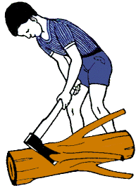 (vyštipování klínů). Nezatínáme sekeru kolmo k délce kmene, to je marná námaha.