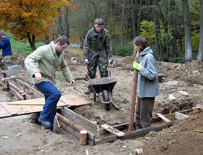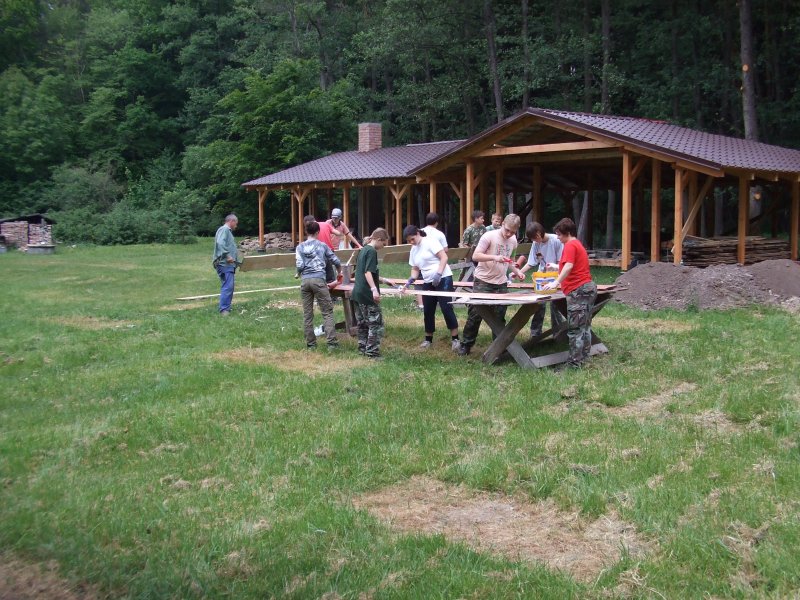 Stavba kuchyněnalezeno 280 fotkek z let 2011 - 2012Bourání kuchyně 9. - 11. září 2011 Kopání základů - technika 26. září 2011 Příprava na betonování základů 14. - 16. října 2011 Betonování základů 4. - 5. listopadu 2011 Odstranění bednění 20. listopadu 2011 Bourání jídelny 12. února 2012 Kopání patek 9. - 11. března 2012 Betonování patek 17. března 2012 Izolace základů 24. března 2012 Kovové patky na patky 5. dubna 2012 Hrubá stavba - kuchyň 17. - 20. dubna 2012 Hrubá stavba - jídelna 23. - 25. dubna 2012 Střešní latě 29. dubna 2012 Stavba komínu a střešní latě 7. května 2012 Natírání a betonování 12. května 2012 Dostavba komínu 15. května 2012 Střešní krytina 18. - 20. května 2012 Vydří brigáda 22. května 2012 Přípravné práce 27. května 2012 Odpady a příprava pro dlažbu 9. - 10. června 2012 Dlažba, okna, zásobák 15. - 17. června 2012 Zásobák 22. - 24. června 2012 Stěny a interiér 30. června 2012 Stěny a interiér 2 15. července 2012 Okenice 1. - 2. září 2012 fotografové: Píďa, Tom, Šéďa, Ještěr, Bětka, Marian, Slon, Zuzka | Klubová kronika: Tábor 2012 |