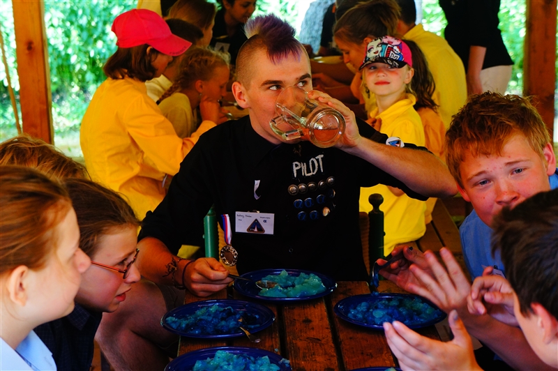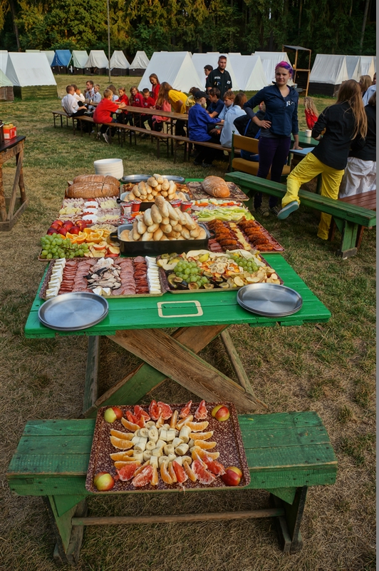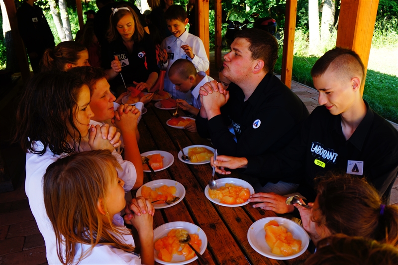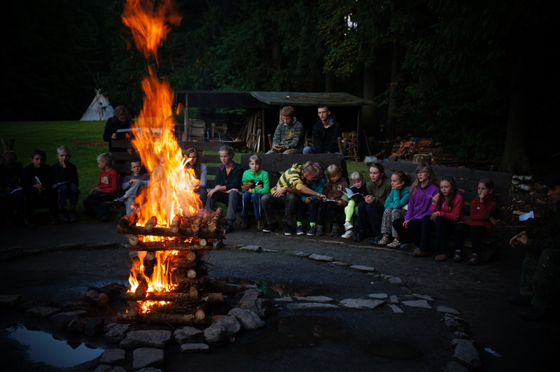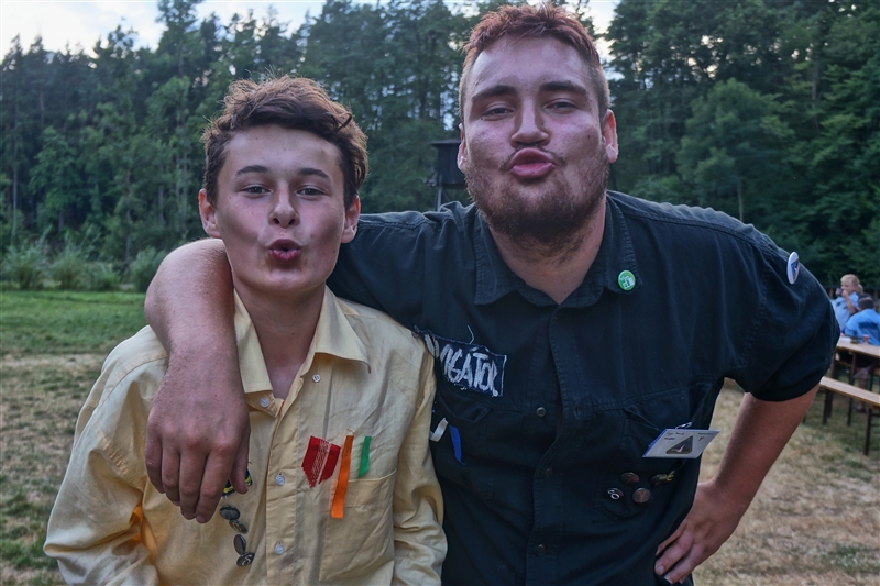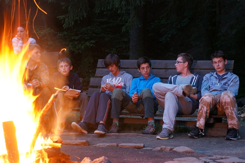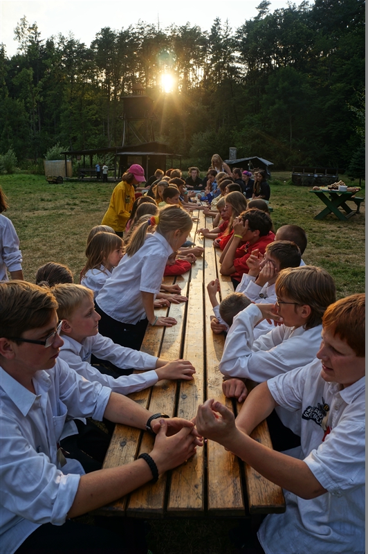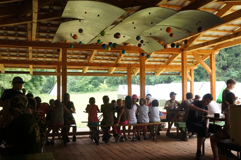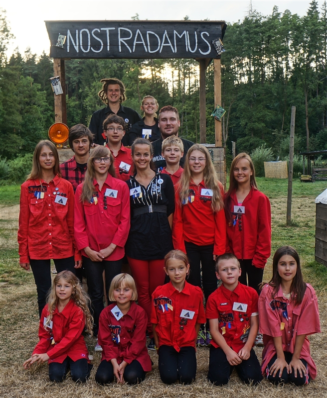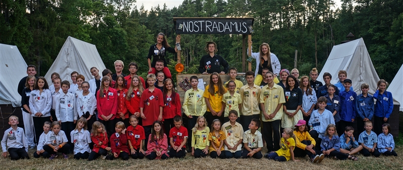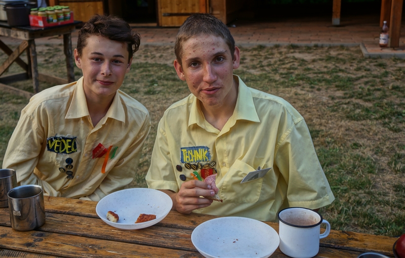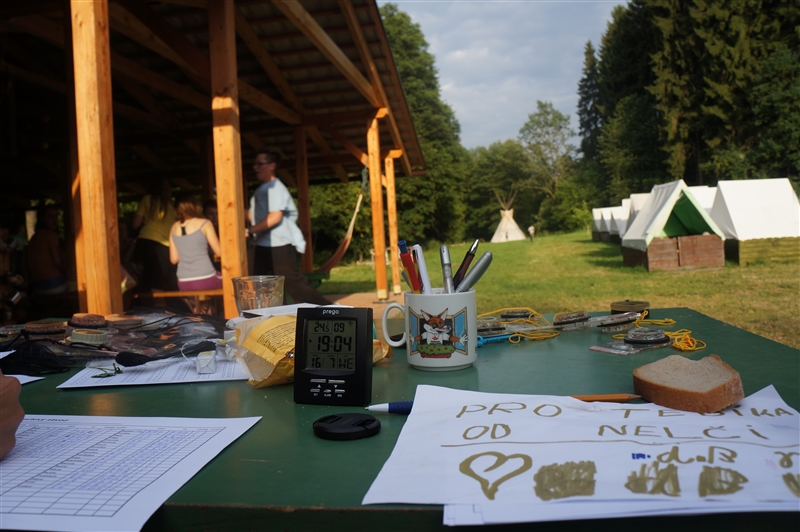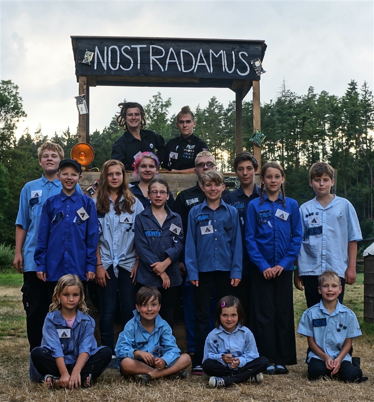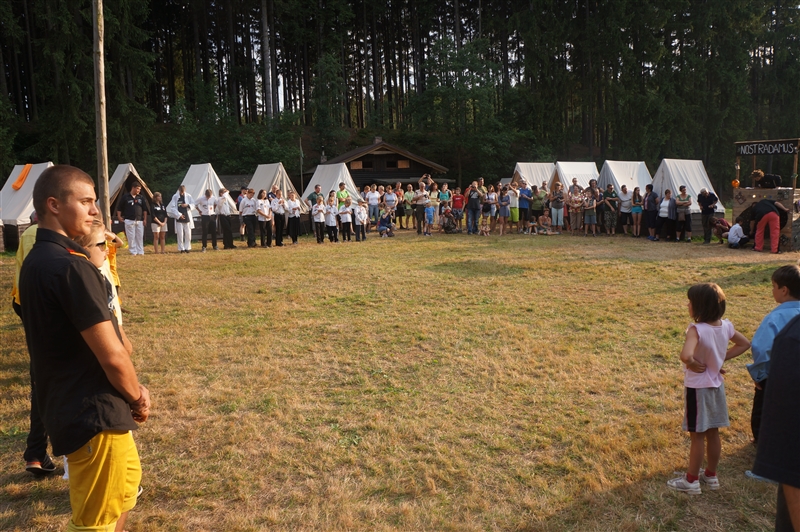 19. 7. 2114. Průlet atmosférou byl doprovázen útoky droidů. Naše posádka musela loď bránit, což se povedlo, ale s velkými ztrátami. Přistáli jsme na planetě, kterou jsme nazvali Tubus Telekus. Zde budeme muset chvíli zůstat a opravit škody na lodi. A jako rozptýlení nám přiletěla odpoledne návštěva. Celý den se proto nesl v duchu příprav – oheň, úklid, příprava kuchyně a udírny. V 16:00 přiletěli rodiče a příbuzní na náš raketoplán. S rekruty chvíli pobyli a prošli se po lodi. V 19:00 jsme se všichni sešli na slavnostním nástupu, kde byl vyhlášen azimutový závod, noční etapa a rozdána veteš. Klasicky za 10 kliků pro rodiče. Poté děti předvedly svůj program, který se skládal ze scének jednotlivých skupinek rozdělených podle specializací. Za psychology to hodnotím velice kladně. Nakonec jsme si zazpívali u ohně naše oblíbené písničky a večerkou se s rodiči rozloučili. (Carla Santos)