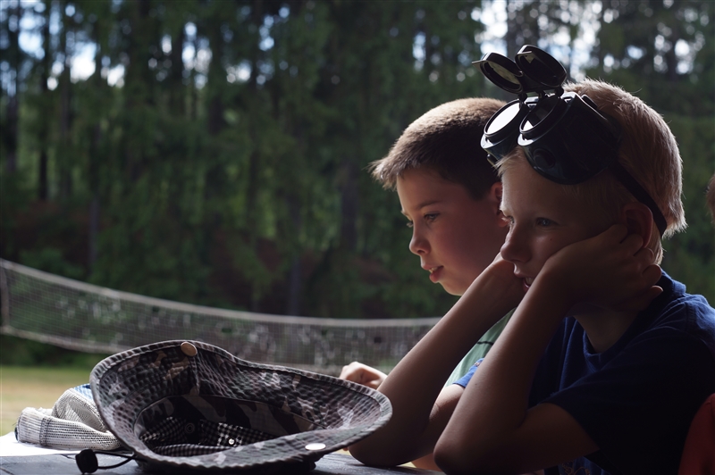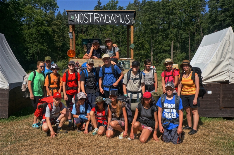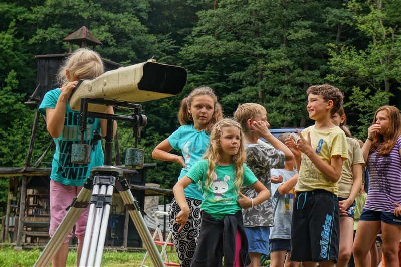 20. 7. 2114. Probrali jsme se do krásného nedělního rána bez rozcvičky. Avšak nečekalo nás žádné válení, jak by někdo mohl v neděli očekávat. Ihned po probuzení se všichni rekruti začali balit na dvoudenní výpravu, jejímž cílem bylo místo, ze kterého bychom dokázali zaměřit naši vysněnou planetu s ideálními podmínkami pro život. Zatím nám nestačila naše technika ani výpočty astronomů ze Štěfánikova astronomického ústavu v Praze, a tak jsme se vydali k jednomu z největších a nejdokonalejších dalekohledů v širém vesmíru. Ten se nachází na planetě Tubus Telekus, konkrétně v oblasti zvané Ondřejov. Jelikož cesta nebyla nikterak jednoduchá, rekruti se rozdělili do 3 výkonnostních skupin. Nejmladší skupina se vydala cestou lety ověřenou přes Chmeliště do Uhlířských Janovic, odtud se svezla vlakem přes Ledečko do Stříbrné Skalice. Cesta nebyla nikterak náročná, zbývalo času i na odpočinek, jídlo a také pár her. Prostřední skupina vyrazila do Uhlířských Janovic také, ale o dost rychlejším tempem, aby stihla vlak do Sázavy. Tady se rekruti zdrželi, dopřáli si zmrzku, oběd a koupáníčko. Ze Sázavy šli rekruti prostřední skupiny přes pár kopců, ale cesta jim dobře utíkala a po půl sedmé došli do obce Hradec k rybníku Propast, kde už čekala nejzkušenější úderná skupina. Tito nejstarší rekruti šli celou cestu pěšmo, vydali se přes Dolní Kruty, kde se občerstvili u místního koupaliště lahodnou malinovkou a dále se vydali střemhlav napříč lesním houštím mimo značené cesty. Později zvolili raději cestu jistější, podél silnic, které je dovedly až k rybníku Propast už po 16. hodině odpolední. Úplně poslední na místo srazu dorazila nejmladší skupina, která ještě smyla pot a špínu v příjemné vodě rybníku. Nezbývalo než se hromadně přesunout na bezpečné místo k přespání. Posádky zvolily strategicky výhodné místo u vodní nádrže hned pod Ondřejovem. Bylo tam opravdu nádherně, jako by toto místo připomínalo některé z překrásných míst na naší planetě Zemi ještě před jejím zničením, avšak bylo to jen zdání a zdání občas klame. Tento optický klam měl vyvolat touhu tu zůstat a zemřít na nedostatek. Planeta Tubus Telekus nebyla pro nás, my museli hledat dál. Sice se již blížila temná noc, ale rekruti odmítali jít spát hladoví. A tak se mazalo a vařilo a skuhralo, že je hlad a dochází voda. Nakonec však všichni odcházeli spát spokojení, s plným břichem a nadějí, že následující den se stane něco velkého. (Yvonne Petterson)