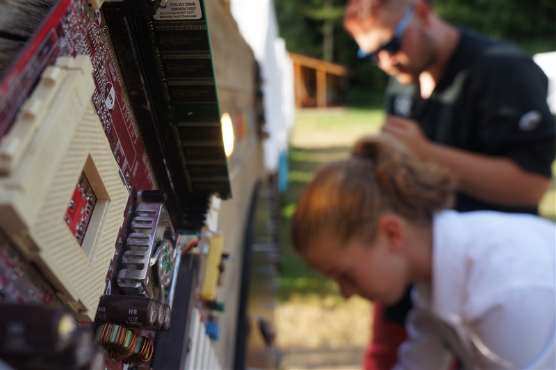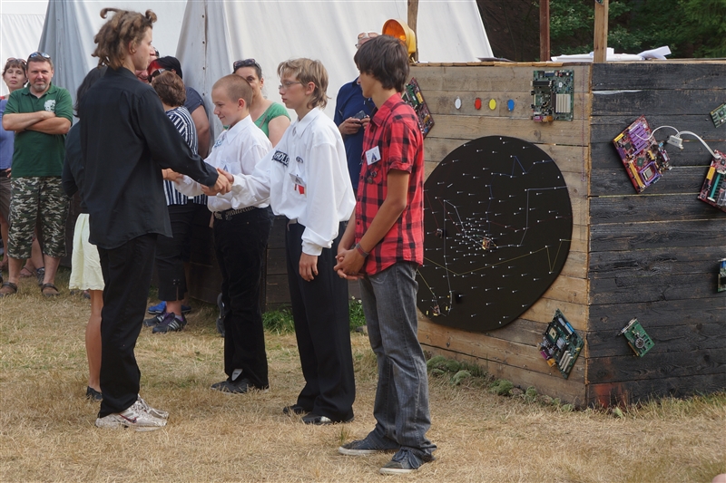 8. 7. 2114. Úterní ráno nezačalo nikterak neobvykle. Po rozcvičkách, bodování a snídani (nově zavedené slané varianty – chléb s paštikou), proběhly klasické táborové prácičky a potom studium kartografie a zdravovědy. Napětí stouplo až po obědě, kdy si nás Helmut Kriegel opět svolal. Radary totiž zachytily signál ze sondy, kterou již dříve zkonstruoval a vyslal na průzkum do vesmíru. S touto sondou již dlouho nenavázal spojení, ale podle zachyceného signálu posádky zjistily souřadnice, kde by se měla nacházet. Vypadá to, že bychom z ní mohli získat cenná data. A tak mladí technici (projektanti) kreslili projekty na průzkumné sondy. Velcí technici (konstruktéři) projekty zrealizovali. Moudře volili součástky a spájeli je dohromady, až vznikly krásné a funkční sondy. Druhé odpoledne posádky procvičily svou fyzičku, když proběhl turnaj v ocáskách – zde se ukázalo, jak dokážou rekruti taktizovat a spolupracovat. Prověřil je také tým vedoucích, skupina Omega. Na večer zavítal do výcvikového centra Astrobus ze Štěfánikovy pražské observatoře. Rekruti si vyzkoušeli zacházet s dalekohledy a dozvěděli se spoustu důležitých informací o vesmíru. Po večeři se konala také velmi důležitá ceremonie, kde se předaly první hodnosti úspěšným rekrutům a také se slavnostně vyslaly průzkumné sondy do vesmíru. (Yvonne Petterson)