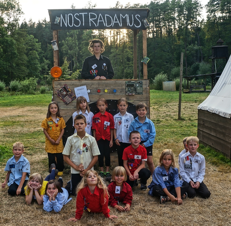 10. 7. 2114. Šestý den mise začal jako obvykle řádným rozcvičením. U snídaně na naše rekruty čekala novinka – rohlík s vysočinou, po kterém se jen zaprášilo. Po ranním nástupu byli vysláni na dopolední zaměstnání, které je nezbytně nutné pro udržení chodu tábora. Dále je čekala odborná zaměstnání, kde se rekruti vzdělávali. Po vydařeném obídku rekruti dostali možnost zdokonalit se přímo ve svém oboru. Celé první odpoledne studovali materiály přímo od profíků v dané profesi. V druhém odpoledni jim byla vysvětlena etapa, která probíhala v rozlehlém okolí našich lesů. Část družiny představovala sondy a další část meteority. Jejich cílem bylo hledat a obsazovat nové planety. Všichni členové sondy se museli zdržovat pohromadě v kruhu, jedině tak byli v bezpečí před meteority. Večerní program byl pojat netradičně v podobě hraní deskových her. Celkově bych dnešní den zhodnotila jako rozmanitý a poučný. (Marika Ďuričová)
