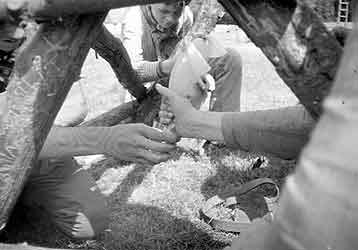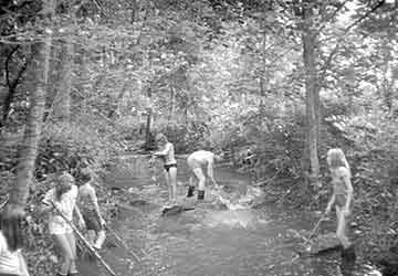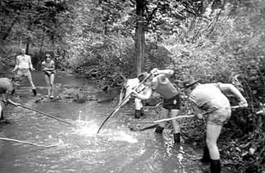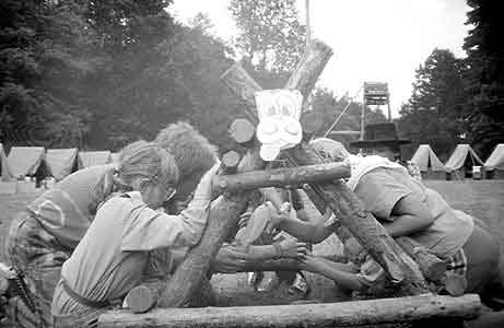 V roce 1987 byla celotáborová hra zcela z jiného soudku. Před více než sto lety hnal John Chisholm první stádo dobytka ze San Antonia v Texasu do Montany. Zdrojem inspirace této celotáborové hry se tedy stala kniha Zana Greye Jezdci z pastvin. Ke slovu přišly mimo jiné klobouky, stříkací pistole a pánve na rýžování zlata. Začátek byl náročný. Mnoho věcí se nestihlo připravit, jediné co opravdu fungovalo, byla nová kuchyň, která byla během invaze vybavena komínem, dvěma sporáky a kotlem na vodu. Márty se ujal funkce šerifa až večer před příjezdem dětí a to kvůli tomu doslova utekl z nemocnice. Jeho ruka tedy nebyla tak pevná, jak by vyžadovala jeho funkce. Jako zástupce měl Myšku a Evu. Součástí této hry bylo i vydávání kovbojských novin, plánovaných bylo 7 čísel (nakonec vyšly 4). Šéfredaktorkou byla Eva, její zástupkyní Myška, reportérem Márty a jako kamelot byl angažován Dodo. Titulní stránku tvořil Saudkův obrázek kovboje prostřelujícího eso. Vznikl drobný problém, jak tyto noviny nazvat? Existovaly tři návrhy. Nouzovská Trefa, Kovbojské Nářky a Nouzovský Žurnál. Nakonec tedy vyhrála třetí varianta a byla to šťastná volba, protože název byl univerzální a nevázal se tak pevně na celotáborovou hru jako druhé dva. Nouzovský Žurnál totiž začal žít vlastním životem a o rok později, tedy 1988, se na táboře objevil znovu, na podzim téhož roku vyšlo 5. číslo v Kolíně a rok na to už Nouzovský Žurnál vychází celoročně jako oddílový časopis. S odchodem Mártyho po táboře v roce 1990 také skončil táborovými čísly Nouzovský Žurnál. Nicméně rok na to jej vzkřísil Šéďa, který vyměnil psací stroj za počítač s tiskárnou, a Žurnál žije dál. Díky reportérům Nouzovského Žurnálu mohou teď pamětníci vzpomínat na to, co sami prožili, a ti, co již tyto časy nepamatují, se dozvědí leccos zajímavého z oddílové historie. Vraťme se ale mezi kovboje. Slavná cesta našich honáků začala rýžováním zlata. Na Zlatonosném potoce mezi osadami Nesměň a Buda byly vytyčeny čtyři prostory a rýžovalo se. Za utržené peníze si honáci koupili stříkací pistole. Pak si pochytali divoké krávy a označkovali je, postavili pro ně stáje a starali se o ně. Mimo jiné si také přivydělávali na farmách u starousedlíků, dostali za to například vajíčka, ba dokonce i slepici nebo králíka. Kromě kovbojů se tu vyskytl i zloděj dobytka. Jedné noci, ještě než nastoupily hlídky, zmizelo velké množství krav. Vypukl chaos. Předák Dodo ihned obvinil šerifa Mártyho z krádeže. Vběhl k Mártymu do stanu a dožadoval se vrácení krav. To si ovšem dovolil dost, obvinit samotného ochránce zákona, který je pod přísahou. Šerif vzhledem k Dodově mládí horkokrevného zmatkujícího předáka nejen nezastřelil, jak bylo jinak dobrým zvykem, ale spolu se svými zástupci Myškou a Evou prohlédl pečlivě za denního světla stopy. Bylo jich žalostně málo, neboť většina padla za oběť nočnímu zmatkování Doda a jeho společníků. Závěr byl ale jasný, krávy ukradl někdo z tábora! Kdo může být ten bezcharakterní zloděj, který jednu ruku podává k pozdravu a současně druhou krade krávu, uvažuje šerif a začíná prověřovat alibi některých známých anarchistů, například Mariana. Za několik dní nalezly Dáša a Helča ukradené krávy na umývárce. Vedle krav byla zpráva, v níž Duch prérie vyzýval, aby si kovbojové své krávy lépe hlídali. Šerif Márty proto preventivně zakázal po celém táboře pouštět duchy. To už začínalo být leccos jasné. Do hry se zapojila i redakce Nouzovského Žurnálu, která výrazně ovlivnila pátrání několika vhodně volenými články, např. Vypustí Duch prérie ducha? Našel se i svědek, který pachatele viděl se v noci plížit ke stájím. Mnohé napověděl samotný dopis Ducha prérie. Koneckonců i matka prý poznala písmo svého nezdárného syna. Pak šerif tajně vyslechl jeden rozhovor a na základě shromážděných informací byl pachatel usvědčen. Údajně byl totožný s tím, kdo si už v Hryzelích při podobně motivované krádeži seker říkal Bob, a to byl Marian. Ten však toto nařčení dodnes popírá. Vzhledem k tomu, že redakci Nouzovského Žurnálu tehdy představovali sám šerif Márty a jeho zástupci Myška a Eva, kdo ví, jak to vlastně tenkrát bylo? To víte, divoký západ.