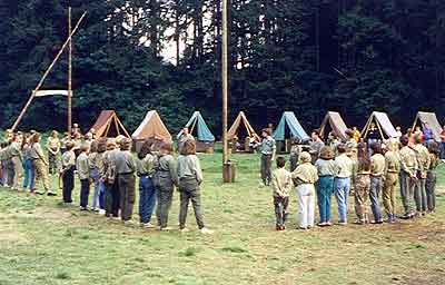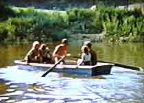 Tábor roku 1991 byl ve znamení pátrání po stopách vědecké expedice v pralesích Jižní Ameriky v oblastech dávných civilizací. Družiny měly k dispozici velice poničený deník této výpravy, jehož stránky byly ohořelé, potrhané, některé chyběly úplně a zápisy byly čitelné často jen s obtížemi, pokud vůbec. Podle zápisů v deníku družiny plnily různé úkoly a hledaly stopy po předchozí výpravě. Vrcholem hry bylo dvoudenní pátrání po pokladu Inků, který obsahoval mimo jiné zlaté odlitky figurek zvaných panter (tedy žádná kočkovitá šelma). Poklad byl uložen v jeskyni na břehu Sázavy nedaleko Malovid. Jeskyni hledaly družiny podle rozstříhané mapy. V červnu před táborem Marian pořádal výpravu do Kutné Hory a ostatní vedoucí prováděli průzkum terénu. Z vlaku vystoupili na zastávce Rataje nad Sázavou předměstí a sešli do údolí malého potůčku, kde si vytipovali místo k přespání. Pak vyrazili k Sázavě. Šli lesem, a i když měli mapu, točili se kolem dokola, až skončili v Ratajích místo v Malovidech. "Potěš nás pánbu," prohlásil Šéďa. "Jestli se budou družiny orientovat tak dobře jako my, poztrácí se nám celý tábor." V Ratajích přešli Sázavu po železničním mostě a pokračovali po druhém břehu na Český Šternberk. Zde však nebyla ani stezka, a tak se probíjeli roštím a lezli po skalách. Šéďa si při slézání ze skály o větev akátu roztrhl kalhoty a poškrábal nohu. Pak už byli z nejhoršího venku a dostali se na asfaltovou cestu vedoucí do Českého Šternberka okolo hledané jeskyně. Sázavu pak přebrodili u malovidské zastávky, kde byla voda asi po kolena, a jen tak tak chytili vlak do Rataj. Slečna průvodčí se divila, když viděla, jak se pod Slonem a Buggym tvoří louže vody, protože si při brodění nezuli boty. "Kde jste byli?" ptala se. "My jsme šli vodou," prohlásil hrdě Slon. Když na táboře došlo k závěrečné etapě hry, počasí přálo a sluníčko svítilo o sto šest. Družiny se přesunuly do údolí na místo přespání a nechaly tam spacáky a část batohů. Za pokladem vyrážely nalehko. Problém byl v tom, že poklad v jeskyni ještě nebyl. Měl jej tam dát Čert, který musel ten den do práce a měl od Mariana půjčené auto, kterým pak ve 4 hodiny odpoledne měl dovézt poklad do jeskyně. Družiny však měly lepší orientaci než vedoucí v červnu. 4. družina si to namířila přímo na Malovidy a kdyby Šéďa a Šárka členy družiny nebrzdili, byli by na místě už před třetí hodinou. Počasí sice bylo pěkné, ale pár dní před tím byly vydatné deště, a tak Sázava měla znatelně vyšší stav než v červnu. Navíc se 4. družina místo na malovidskou zastávku trefila o pár set metrů po proudu, kde se Sázava dala leda přeplavat. Na druhém břehu však stál tábor a netrvalo dlouho a 4. družina byla převezena na druhý břeh na pramici. K jeskyni dorazili něco po tři čtvrtě na čtyři a chudák Čert jen tak tak stačil prchnout z jeskyně na skálu (pak taky Šéďovi pořádně vynadal, ten se však bránil, že už je víc zdržet nemohl). Za chvíli přišla 2. družina a pak se na druhém břehu objevila 3. družina a začalo velkolepé šou, které mohl Čert za odměnu sledovat pěkně z výšky. Marian sice dovedl družinu přesně k jeskyni, vytasil se s lanem, ale s takovým proudem zjevně nepočítal. Slon se vydal na průzkum a pomocí kluků na pramici se mu podařilo natáhnout lano na druhý břeh. Pak ti nejzdatnější za vydatné podpory svých kamarádů brodili na druhý břeh, aby si vyzvedli v jeskyni poklad. Ve všech hrklo, když Ještěrka zahučela po krk do vody, protože jí proud podrazil nohy, ale provazu se nepustila. Potom 3. družina zase brodila zpátky. 2. družina brodila u malovidské zastávky, kde byla voda skoro až k pasu, a způsobila tak veřejné pozdvižení. Na terasách okolních rekreačních objektů přibývali diváci a v rukou některých pánů se objevily dalekohledy. Na lesní tábořiště pod širákem dorazily družiny až v noci. "Máte to jako generálku na Návrat," říkal Šéďa Dáše a Lence, když si zkracovali lesem cestu od Českého Šternberka. S mapou v ruce to nebyl takový problém. Navzdory počátečním obavám se nikdo neztratil a dvoudenní výprava za pantery tedy skončila úspěšně. |