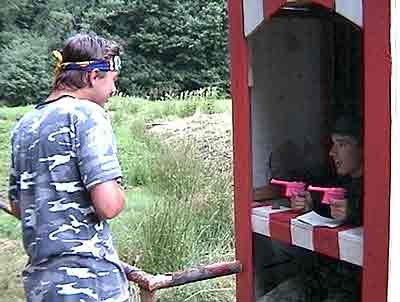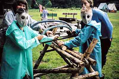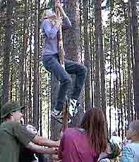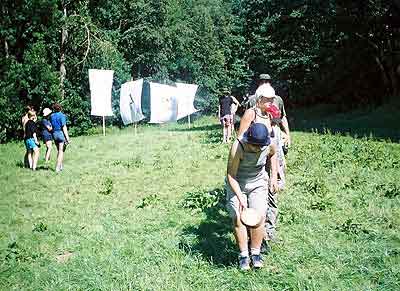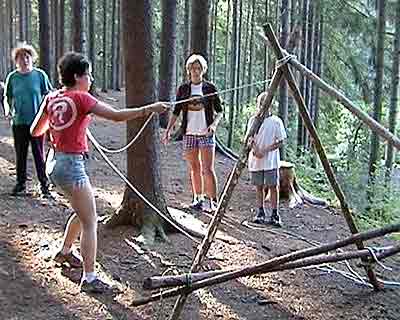 V závěru zájezd čelí bouři a rodiny si staví pevná obydlí. Kameny na jejich stavbu musí dovalit do míst svých staveb. Kameny představovaly čtyřstěny o hraně 2 metry z tyčoviny, které bylo nutné provalit lesem po předem určené dráze. To byste nevěřili, jak nesnadný je to úkol. Kdo ještě ze školy pamatuje, jak vypadá čtyřstěn, ten už tuší to, co táborníci pochopili v praxi. Čtyřstěn nelze kutálet rovně.